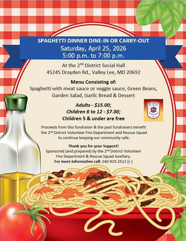 2nd District Social Hall - 45245 Drayden Rd., Valley Lee MD 20692 |
